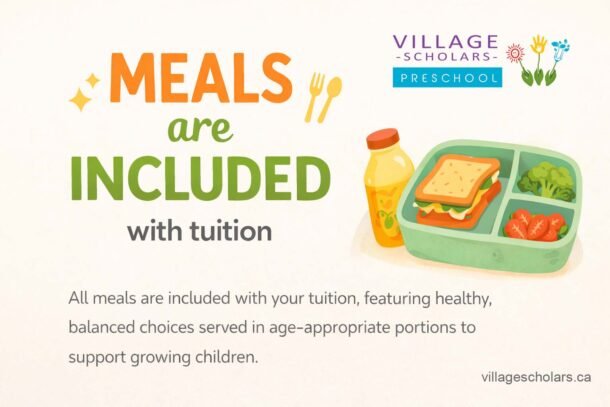 Village Scholars Preschool provides freshly prepared meals made onsite, supporting healthy growth and good habits through real food and balanced nutrition.